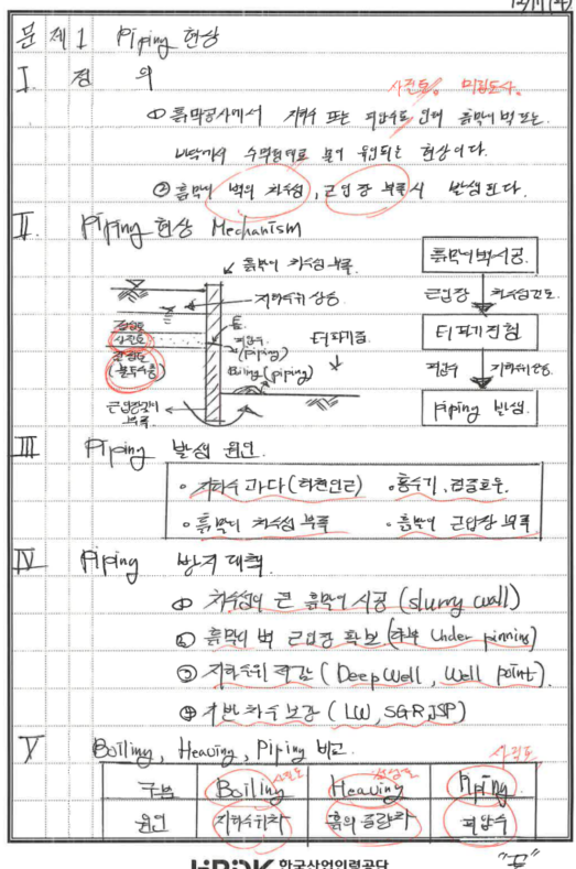 흙막이 틈새로 물이 나오는 것을 파이핑이라고 한다.