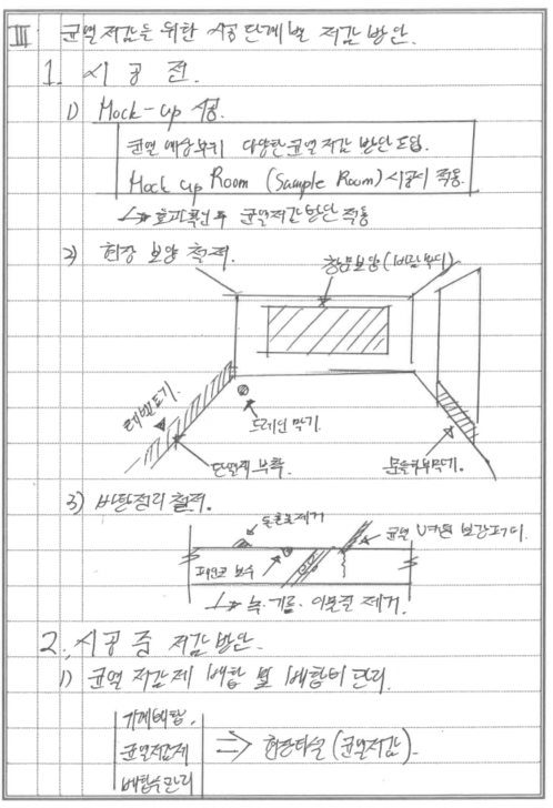[서술] 공동주택의 미장공사에서 온돌바닥의 품질기준 및 균열저감을 위한 시공단계별(전,중,후) 관리방안