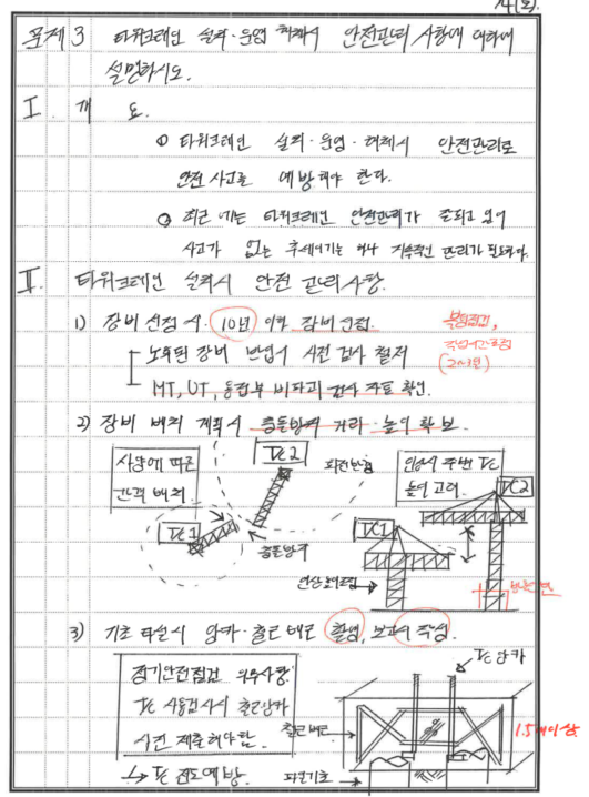 [서술] 건축공사에서 타워크레인 설치,운영,해체에 대한 검토사항과 기초보강방안에 대하여 설명하시오 (0) | 2025.07.25 |