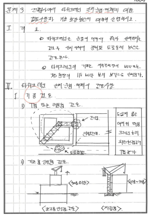 [서술] 건축공사에서 타워크레인 설치,운영,해체에 대한 검토사항과 기초보강방안에 대하여 설명하시오