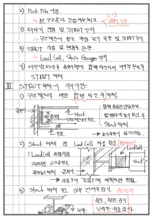 [서술] 도심지 흙막이 Strut 공법 적용시 시공순서와 해체시 주의사항