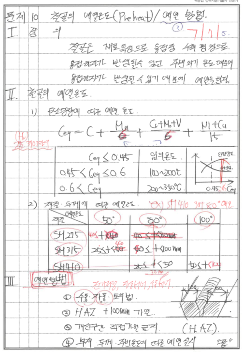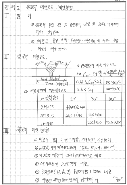 탄소당량 Ceq값이 0.44 이상일 경우 예열을 해야 한다.
