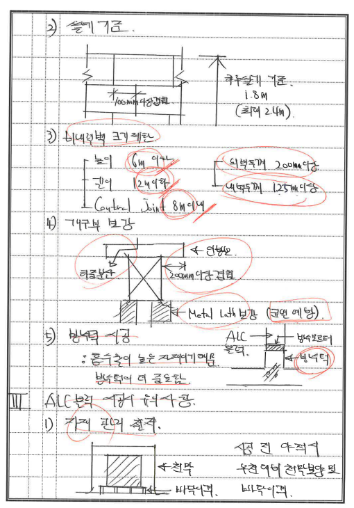 [서술] ALC블록공사에 비내력벽 쌓기 방법과 시공시 유의사항
