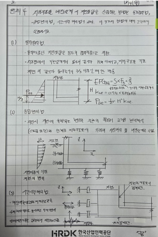 [구조] 지하구조물 내진설계 시 지진토압을 산정하는 방법을 등가정적법, 등가변위법, 시간이력 해석법이 있다. 이 3가지 방법에 대해 간략하게 설명하시오.