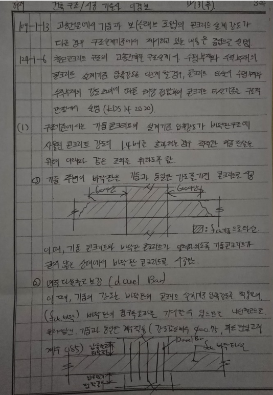 [구조] 고층건물 수평부재와 수직부재의 콘크리트 설계기준 압축강도를 다르게 시공할 경우 콘크리트 타설시 수평부재와 수직부재의 강도차에 따른 해당 접합부의 콘크리트 타설기준을 구조적 관점에서 설명하시오.