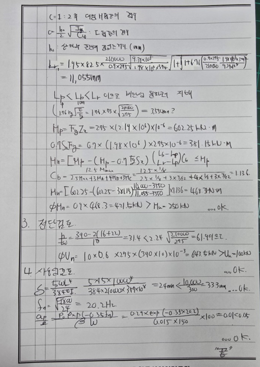 | [구조] 경간 3등분 지점마다 횡변위가 구속되어 있을 때 강구조 부재 설계기준에 따라 휨 및 전단에 대한 안전성을 검토하시오. (0) | 2025.12.02 |