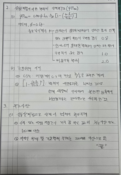 [구조] 116-1-7 철근콘크리트 벽체 설계시 실용설계법을 적용할 수 있는 범위를 제시하고 설계축력 강도식을 구성하는 각 항목들의 의미를 설명하시오.