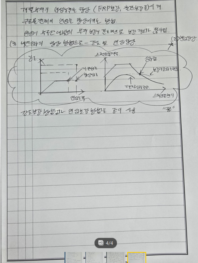 [구조] 합리적인 내진보강목표를 달성하기 위해서는 내진성능평가에서 분석된 상세, 부재 그리고 시스템의 내진취약성을 종합적으로 분석 및 검토하여 보강 설게의 기본방향을 설정해야 한다. 강도, 연성, 강도 및 연성 향상 방법에 대해서 다음 그림에 도식하시오.